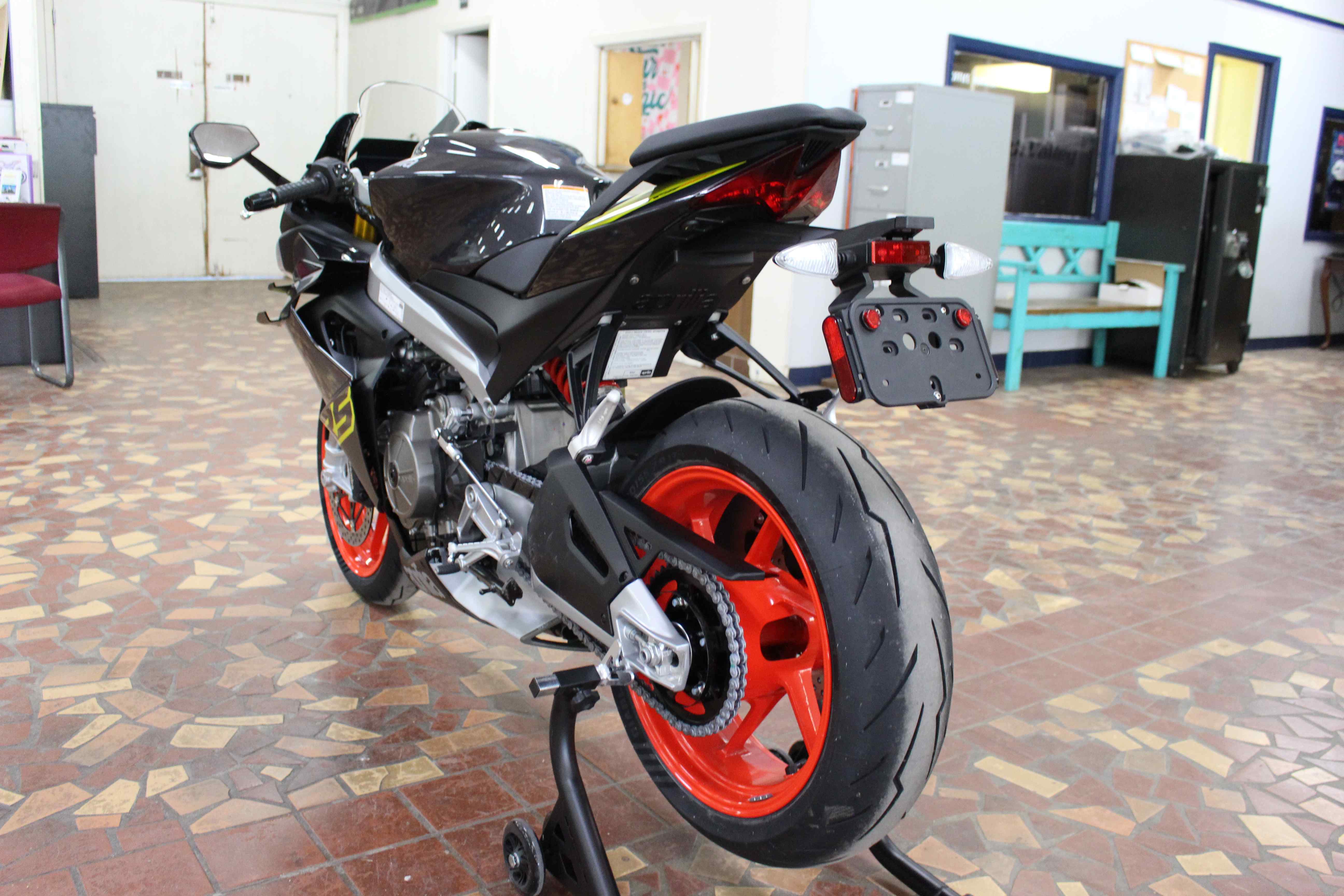 The aggressive character of the front end is further emphasised by full-LED lighting with a distinctive signature. Meanwhile, bold graphics and striking colour contrasts reinforce its Aprilia's sporty nature and rich racing heritage.