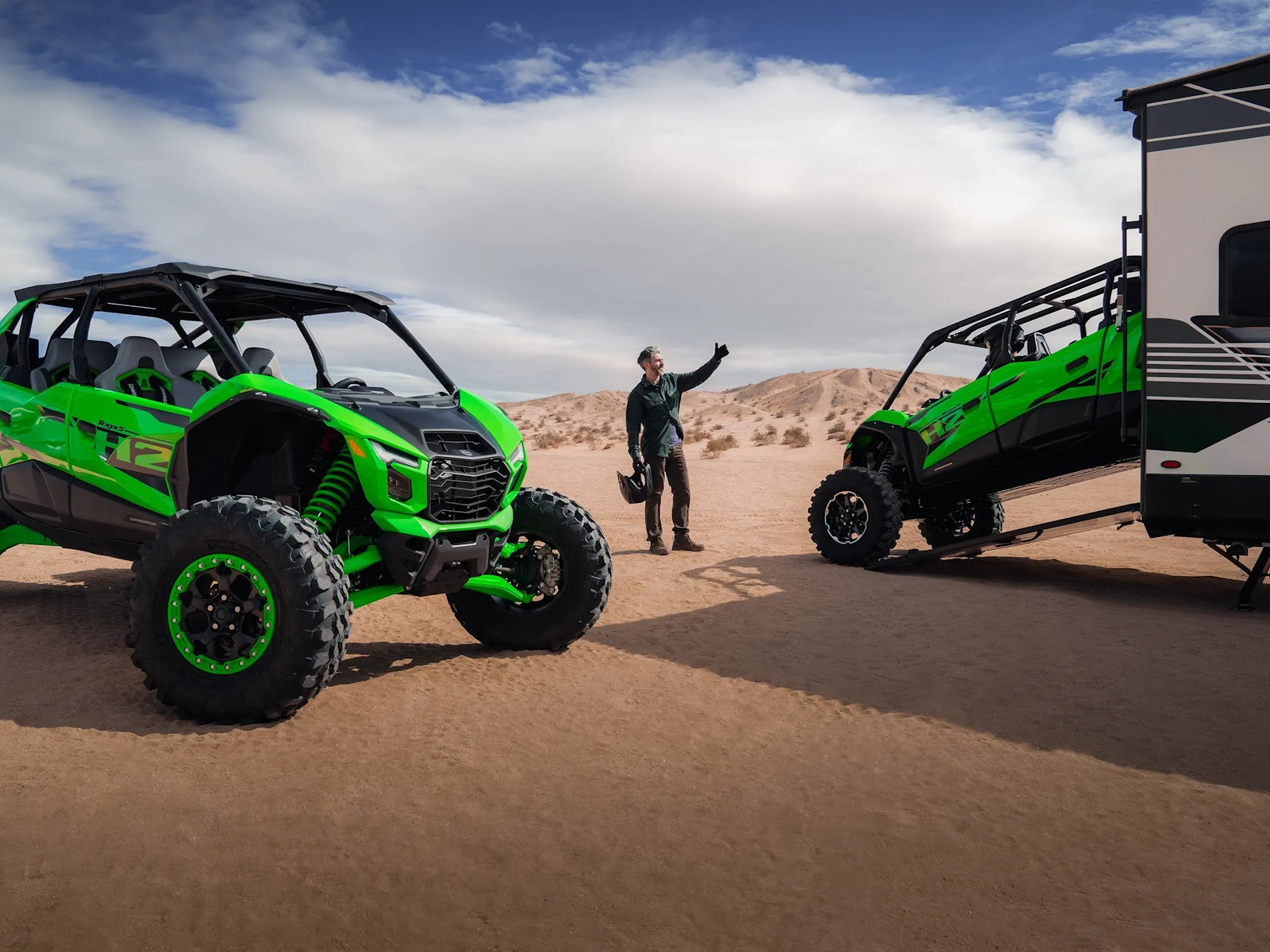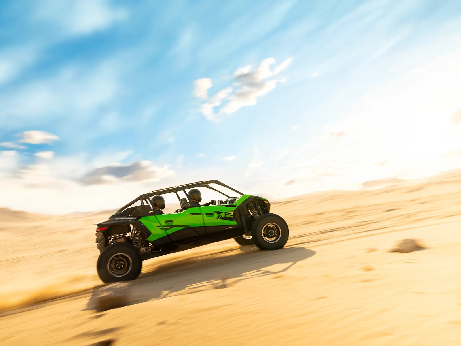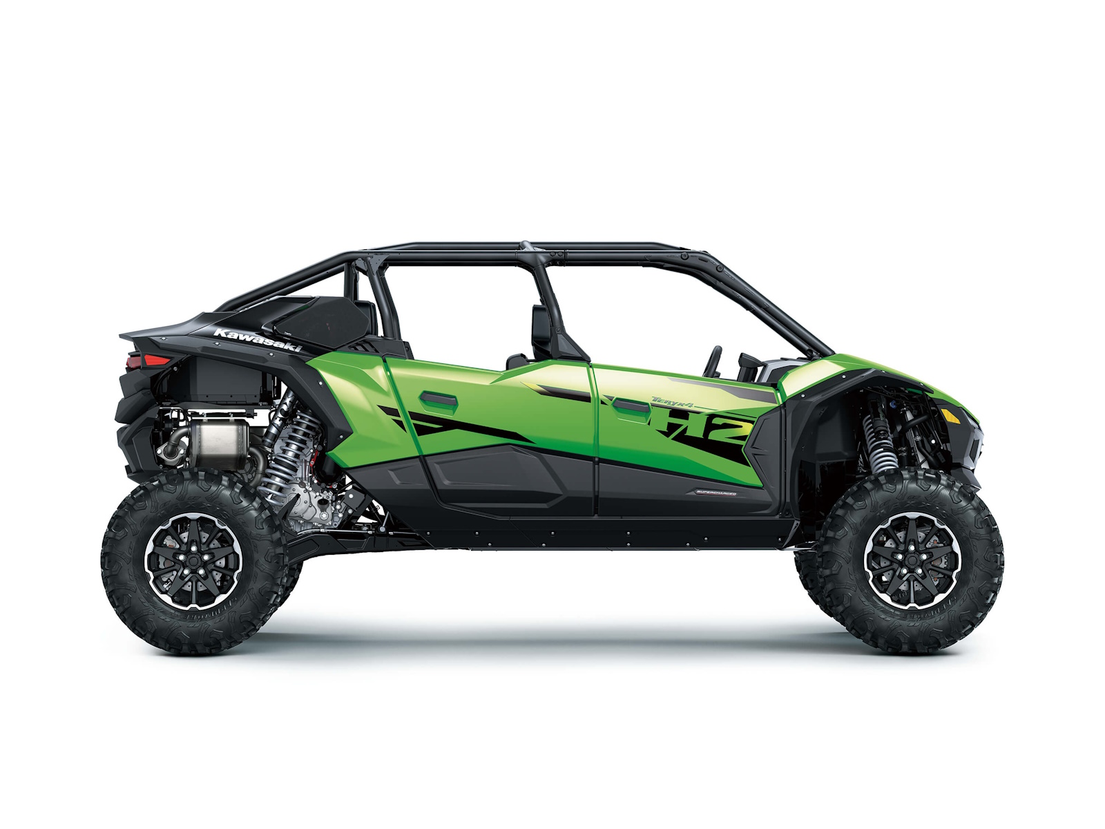 The all-new Teryx®4 H2 and Teryx®5 H2 high-performance side x sides are designed for dune and desert domination. The 250-HP¹ 999cc in-line 4-cylinder supercharged engine is harnessed by a continuously variable transmission (CVT) and a highly rigid frame complemented by long-travel suspension that helps balance the engine's massive power for maximum control. Predictable handling and confident stopping power add to the well-balanced package delivering maximum fun that can be shared with the whole family.