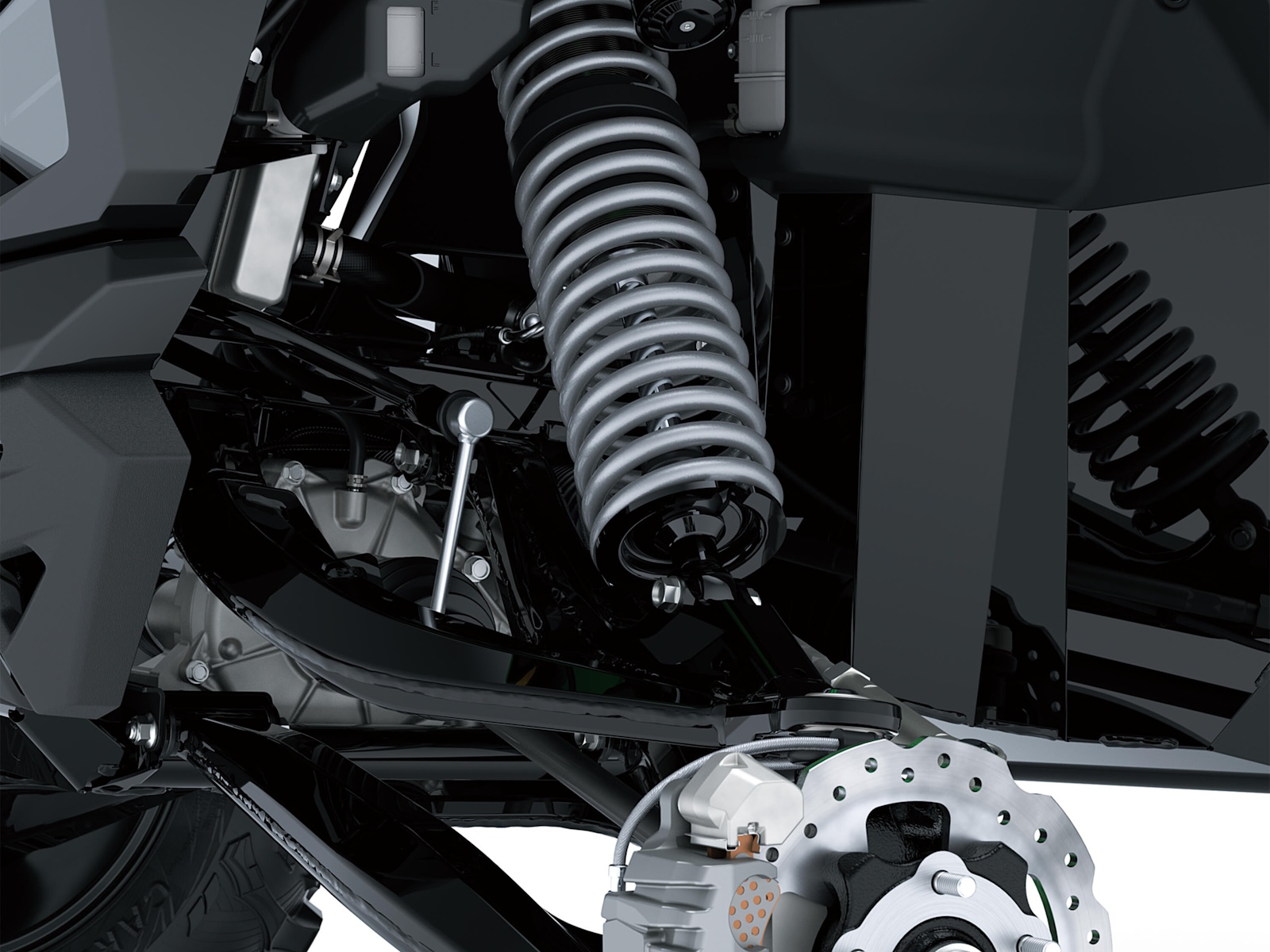 - GROUND-HUGGING LONG-TRAVEL SUSPENSION WITH FORTIFIED A-ARM & TRAILING-ARM SUSPENSION
