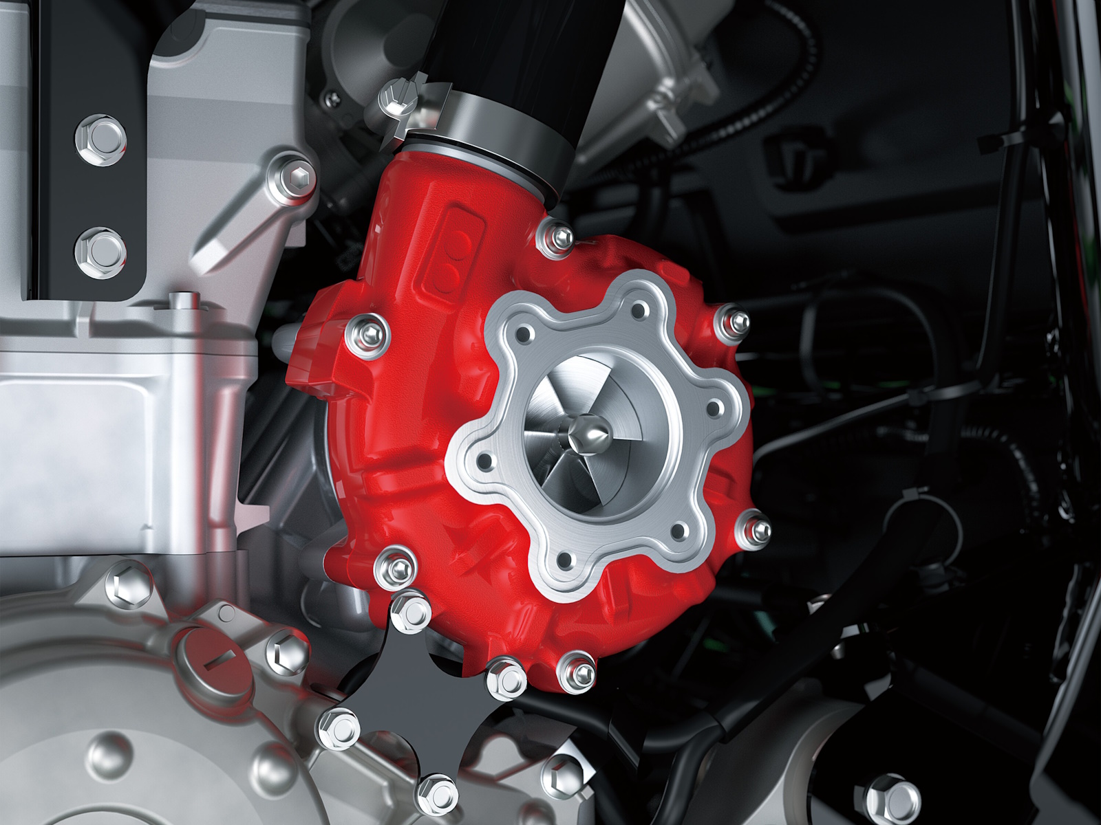 DFI® with (4) 40 mm throttle bodies with dual injection; Kawasaki Supercharger